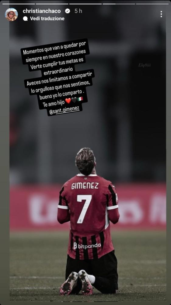 S-希門尼斯的父親曬出了兒子身穿米蘭球衣的賽場照,配文寫道:“這一時刻將永遠留存在我們的心中,看到你實現(xiàn)自己的目標,真的太棒了?!?/p>