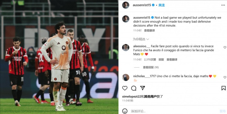 2月7日訊 不久前,羅馬后衛(wèi)胡梅爾斯更新了社交媒體,總結(jié)了球隊(duì)輸給米蘭的問題。