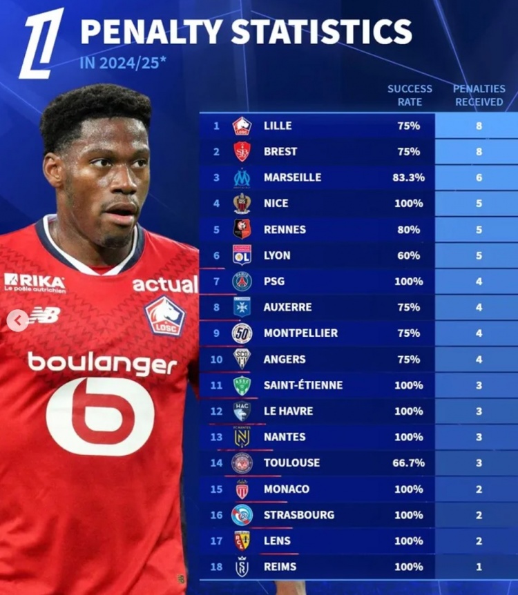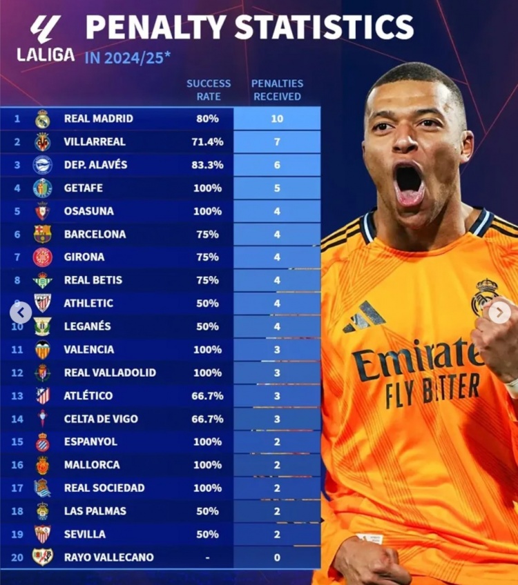 本賽季五大聯(lián)賽獲得點(diǎn)球情況:皇馬10球、拜仁9球、利物浦6球