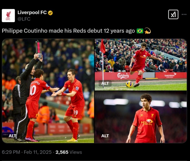 2月11日訊 12年前的今天,庫(kù)蒂尼奧迎來(lái)了自己紅軍生涯首秀,利物浦更新動(dòng)態(tài)表示紀(jì)念。