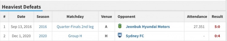 另外,海港隊(duì)史上還有另外一次0-4的失利。當(dāng)時(shí)是在2020年12月1日,海港在亞冠小組賽0-4不敵悉尼FC,不過(guò)當(dāng)時(shí)海港已經(jīng)提前兩輪出線。