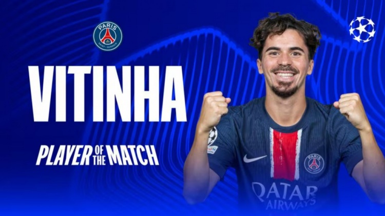 2月12日訊 歐冠淘汰賽階段的附加賽首回合,巴黎3-0完勝布雷斯特。賽后,維蒂尼亞當選全場最佳球員。