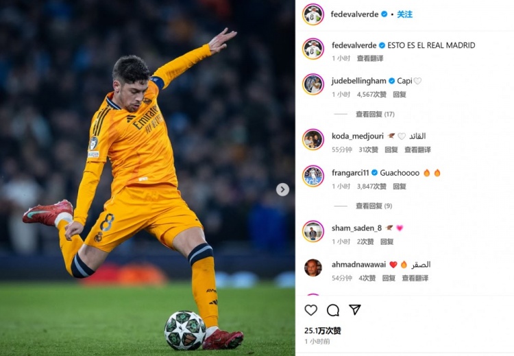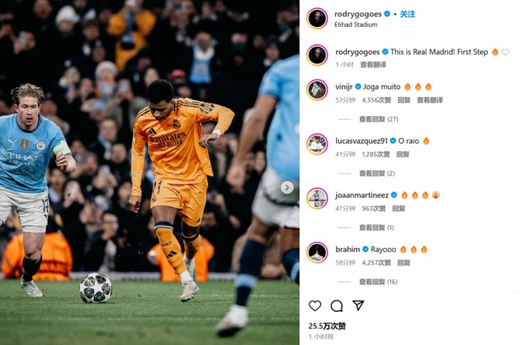 本場(chǎng)客串右后衛(wèi)的巴爾韋德表示:“這就是真正的皇馬!”而右邊鋒羅德里戈也配文道:“這就是皇馬!邁出(晉級(jí))第一步????????