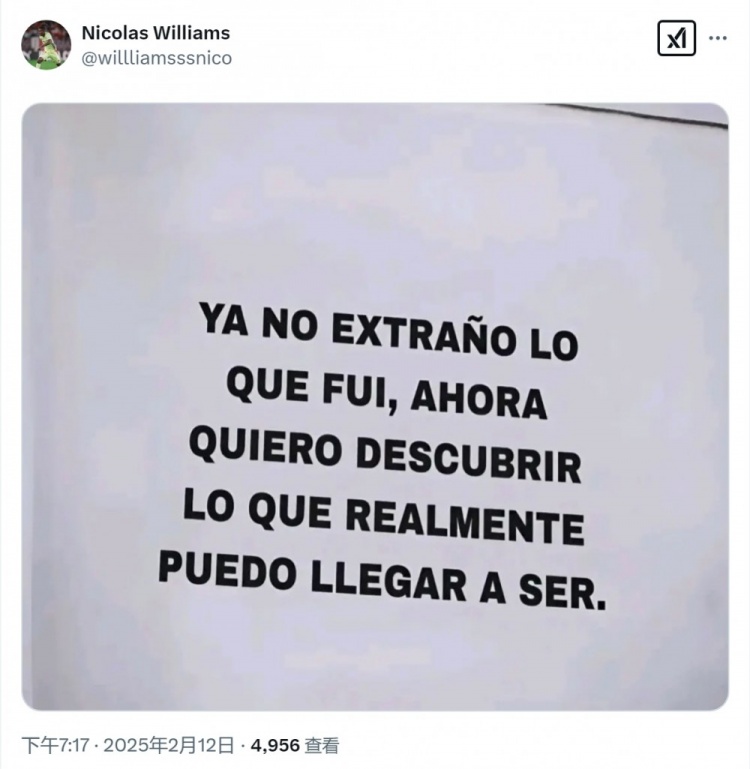 尼科-威廉姆斯社媒曬出的內(nèi)容為:“我不再懷念過去的自己,現(xiàn)在我想探索自己真正能成為什么樣的人?!?/p>