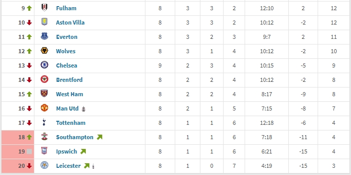 值得一提的是,在降級(jí)區(qū)邊緣,有著兩位眼熟的傳統(tǒng)BIG6成員:曼聯(lián)與熱刺。他們?cè)诖饲?輪拿7分和4分,僅僅高于降級(jí)區(qū)的升班馬三兄弟。而本輪,他們將正面交手。