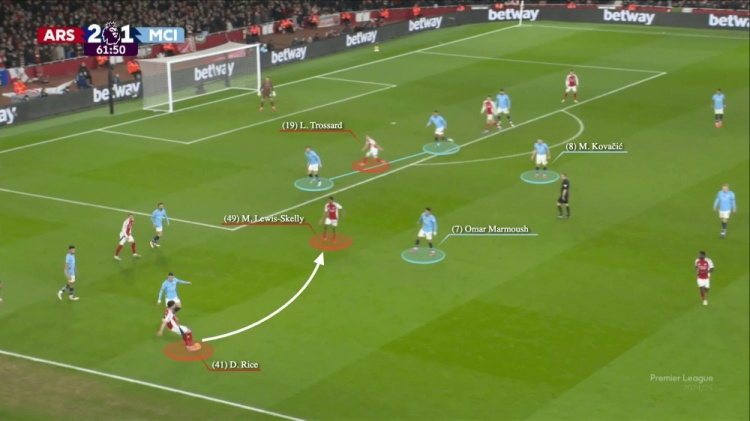 即便客場對陣阿森納的比賽中有10名外場球員參與防守,但他們的站位真的太松散了。馬爾穆什和斯凱利的距離不夠緊,以至于后者能輕松接到德克蘭-賴斯的傳球。科瓦西奇出現(xiàn)在后防線身前,但其實也沒有做到什么保護。