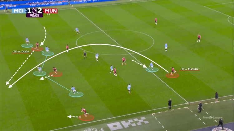 曼聯(lián)的制勝進球是令人震驚的,尤其是上半場早些時候利桑德羅-馬丁內(nèi)斯在身后為霍伊倫送出了幾乎相同的傳球。曼城根本就沒有吸取教訓(xùn)。
