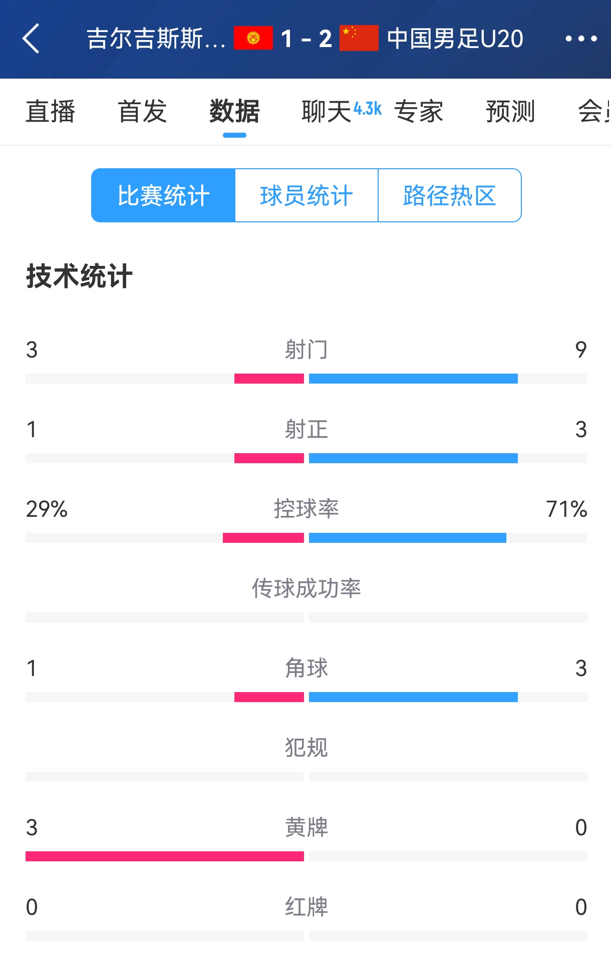 02月15日訊 上半場(chǎng)結(jié)束,國(guó)青2-1領(lǐng)先吉爾吉斯斯坦,在數(shù)據(jù)上中國(guó)國(guó)青全面領(lǐng)先對(duì)手。