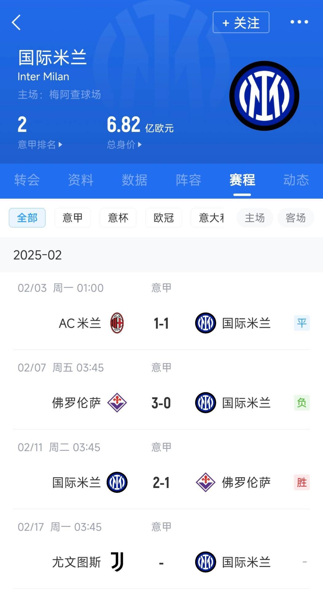 國米此前的3輪也只拿了4分:1-1AC米蘭、補賽0-3佛羅倫薩、2-1佛羅倫薩,對手難啃的同時自己狀態(tài)也并不佳。