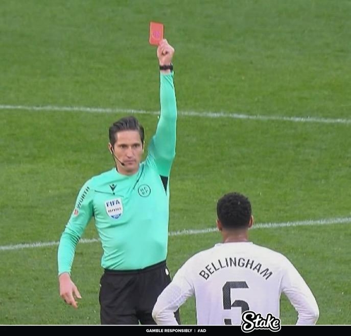 2月16日訊 西甲第24輪,皇馬客場(chǎng)1-1戰(zhàn)平奧薩蘇納,貝林厄姆因?qū)χ鞑帽秩炯t。在裁判報(bào)告中,主裁表示,球員在距離自己數(shù)米遠(yuǎn)的地方,對(duì)他說(shuō)了“Fxxk you”。賽后,貝林厄姆和安切洛蒂均表示裁判和他們之間存在誤會(huì)。